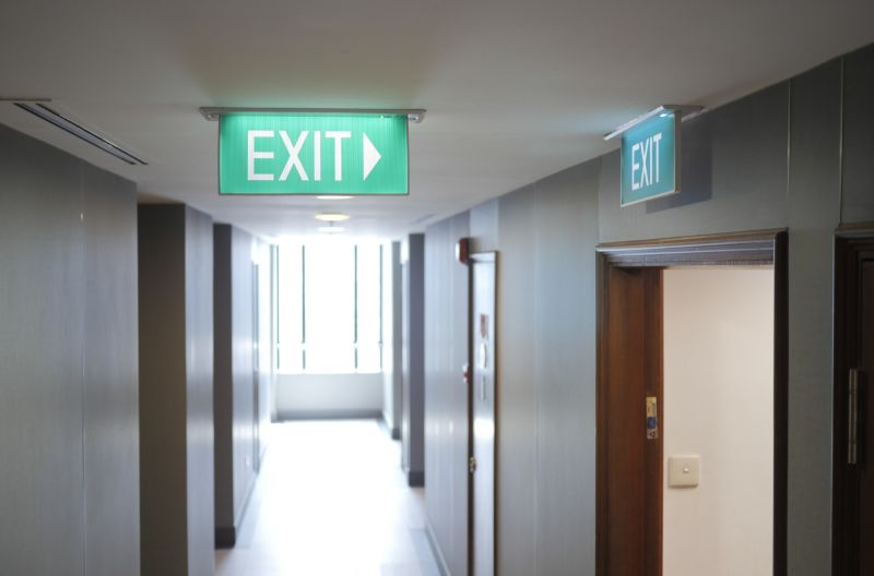 Zorg dat nooduitgangpictogrammen altijd groen zijn en dat ze, indien nodig, fotoluminescerend zijn voor zichtbaarheid bij stroomuitval.